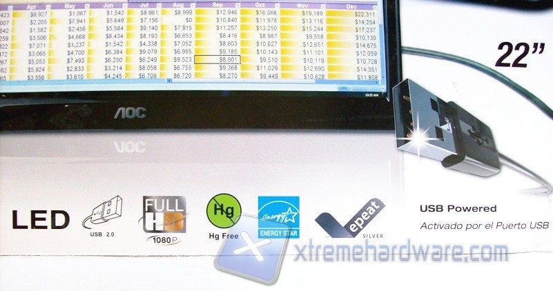 Sul retro, in lingua inglese e spagnola, vengono riportate le caratteristiche che contraddistinguono il monitor USB, mostrate precedentemente. Nella parte superiore è stata aggiunta una pratica maniglia per facilitarne il trasporto; i lati, ad eccezione di un adesivo identificativo, risultano privi di informazioni.